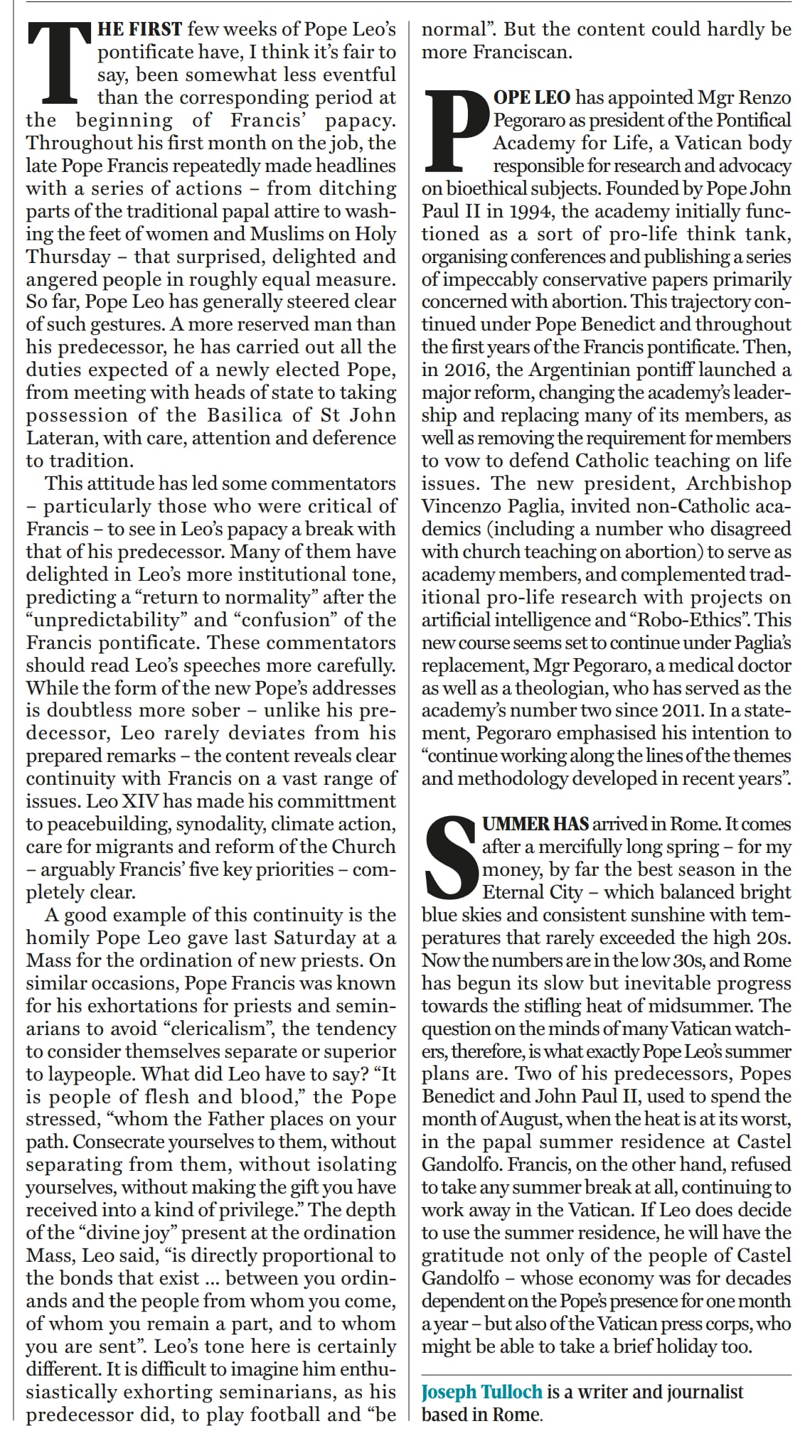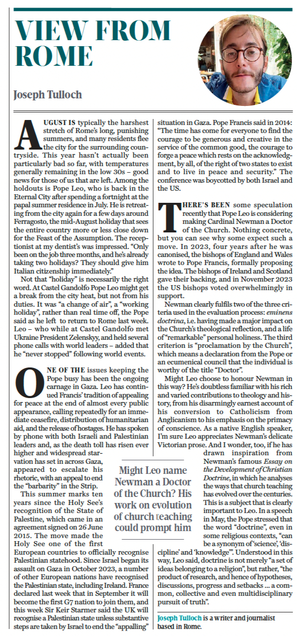 02/08/2025: Roman holidays; Palestinian statehood; developments in doctrine.