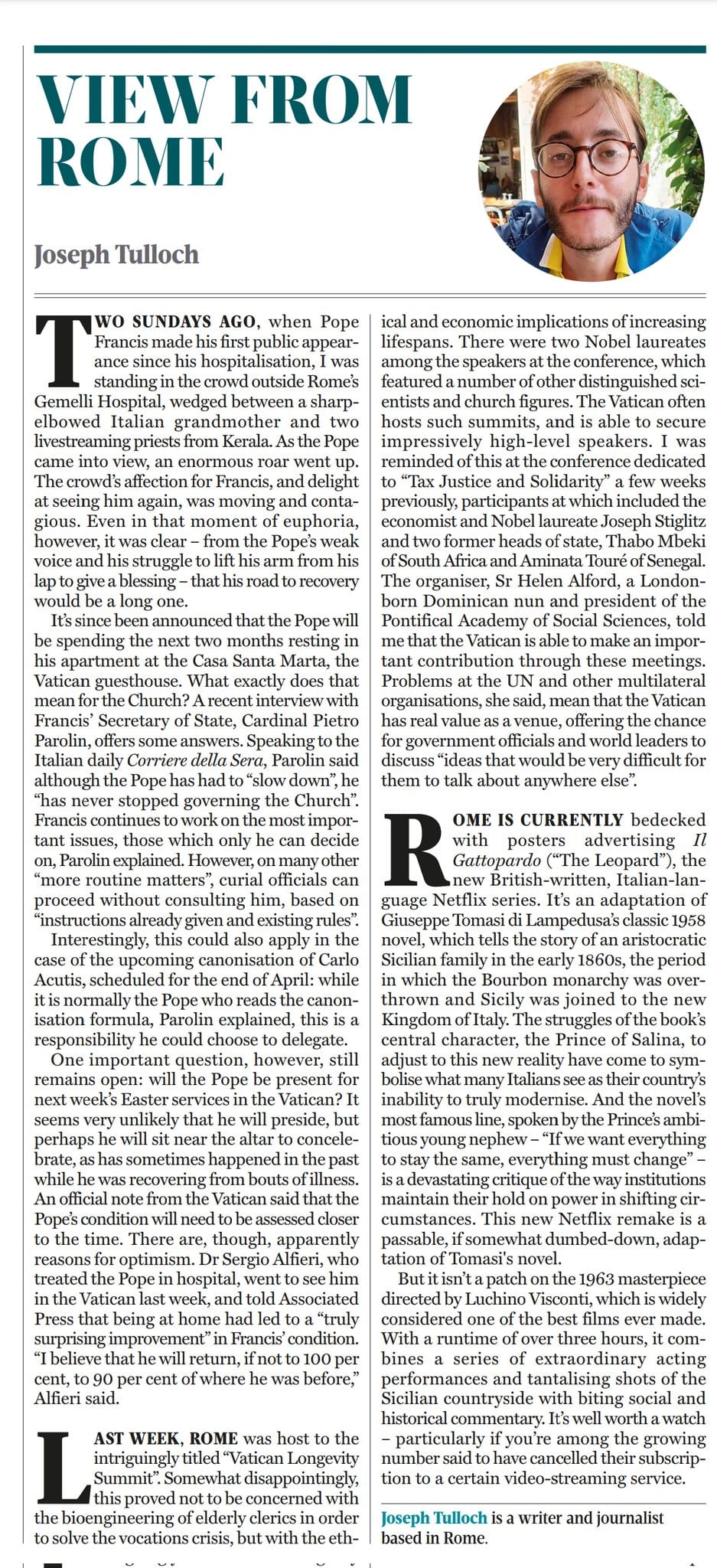 For about a year and a half, from January 2024 to August 2025, I wrote a regular ‘View from Rome’ column for UK magazine The Tablet. Those columns, mainly dedicated to the Vatican but with occasional forays into Italian culture and politics, are archived below.